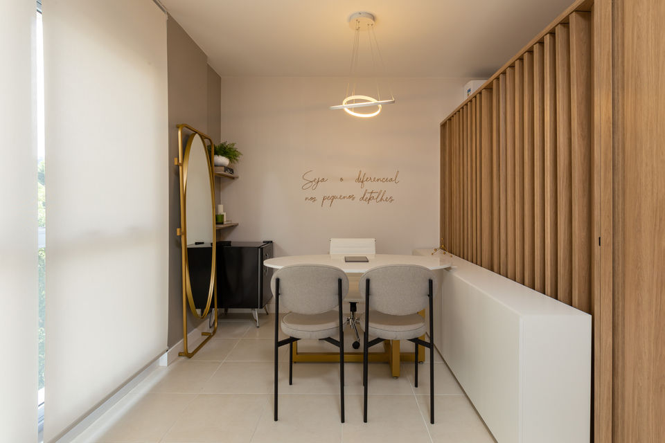 A Ana sonhou com uma sala para seus atendimentos com toques minimalistas, um espaço super aconchegante, com detalhes que atraem os olhares e demonstram o cuidado que ela tem com a cliente e assim fizemos acontecer.Tudo nessa sala foi pensado, projetado, detalhado para as clientes terem uma experiência única. Sala de serviços de estética como Nanopigmentação.